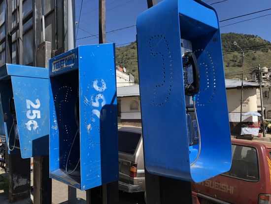 Wir treffen uns dort auf dem Platz wieder, bei den blauen Telefonen, hat René gesagt. Blaue Telefone? Ja hier gibt es sie tatsächlich noch, die öffentlichen Telefone.