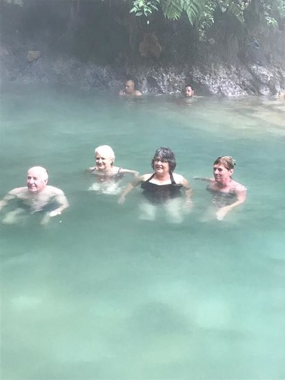 Manchmal ist es ein kleines Abenteuer, an einem unbekannten Ort in ein trübes Wasser zu steigen, doch dann kann man es einfach nur geniessen. Die Wärme, die Dämpfe, das Unbekannte, das Abenteuer. Und dann gibt es im Restaurant eine feine Spargelcremesuppe, bevor wir die abenteuerliche Bergstrecke wieder zurück fahren.