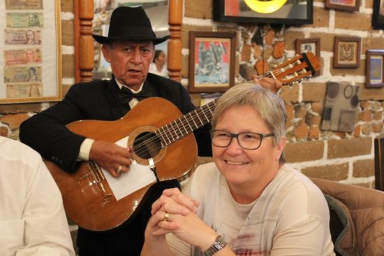 Heute ist Fiesta in der Stadt. Auf dem Hauptplatz würden Mariatchi-Musiker unterwegs sein, die für einen kleinen Obolus singen und spielen würden, erzählt René. Zuerst gehen wir aber gemeinsam in einem Restaurant in der Nähe des Hotels zum Nachtessen. Schon hier gibt es Musik. Zwar ist es nur ein älterer Mann, der zur Unterhaltung der Gäste singt. Ein mexikanischer Mariatchi-Sänger sei das aber noch nicht, meint René.