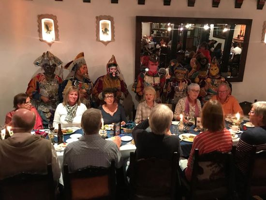 Zum Abendessen bleiben wir im Haus und geniessen eine Aufführung mit einem Maskentanz zu Marimbaklänngen.