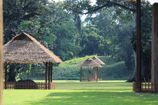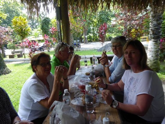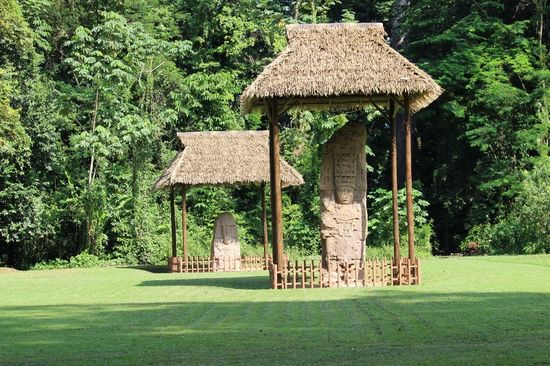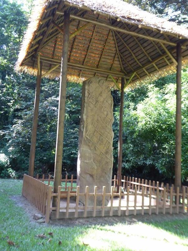 Mitten in den Bananen liegt die kleine Maya-Stätte Quirigua. Hier packen wir unsere eingekauften Köstlichkeiten aus und geniessen ein improvisiertes Frühstück im Schatten.