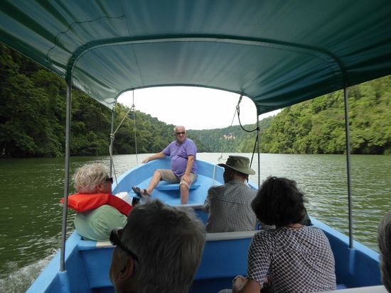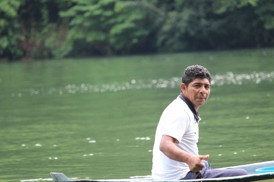 "Fühlt Euch wie die Eroberer", meint René, denn genau auf diesem Weg haben diese Guatemala entdeckt". Über den Süsswasserfluss, der sich zuerst in engen Kurven zwischen den überwucherten Kalksteinfelsen hindurchmäandert und sich dann zu einem breiten Gewässer vergrössert, um schliesslich zum Lago Izobal zu werden, der grösser als der Bodensee ist.