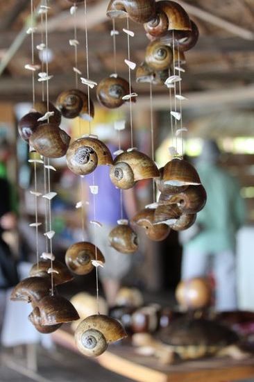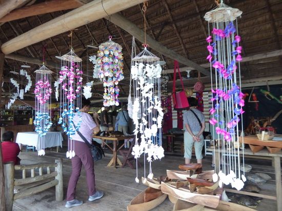 Bei einem kleinen Imbisstand halten wir an. Eigentlich wollten wir frische Kokosnüsse besorgen, aber der Besitzer bedauert, im Moment hat er keine reifen Früchte. Aber er hat eisgekühtes Cola und Bier. Und ausserdem einen kleinen Laden mit Handarbeiten.