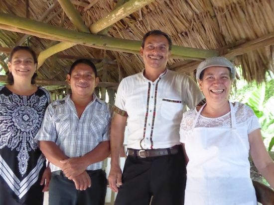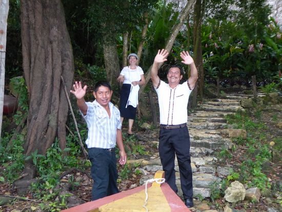 Wir nehmen auch Abschied vom Gastgeber-Ehepaar und ihren beiden Helfern, die uns hervorragend bewirtet haben. Armando, unser Schiffsführer fährt uns zurück über den Arroyo Petexbatun zum kleinen Hafen in Sayaxche.