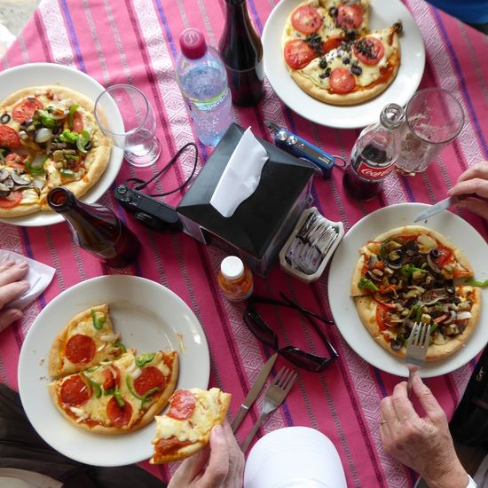 Unser Chauffeur erwartet uns bereits mit dem Bus. Wir fahren zur Halbinsel Flores, wo wir Zeit für ein Mittagessen haben. Eigentlich sollen wir den Ort auf eigene Faust erkunden, doch zufällig finden wir uns fast alle im gleichen Lokal ein. Auf der Terrasse mit Aussicht über den See geniessen wir Pizza, Spaghetti, Fisch, Rind und Crevetten.