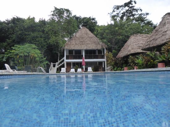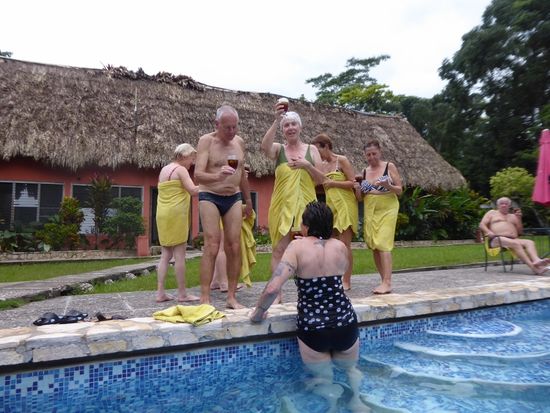 Jetzt fehlt noch das letzte Stück des Tages. Die Fahrt nach Tikal. Einer der Höhepunkte der Reise steht an. Der Höhepunkt des Tages ist heute der Pool. Unsere Zimmer sind fast alle in den Bungalows rund um den Pool angeordnet und darum findet man uns kurz nach der Ankunft alle im kühlen Wasser. Als dann der Mesero auch noch eine Runde Cuba Libre serviert, gibt es keine offenen Wünsche mehr.