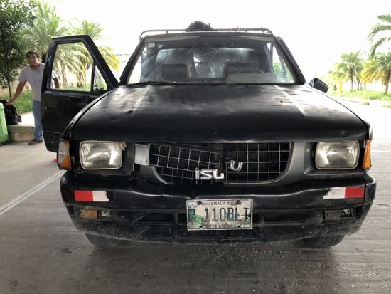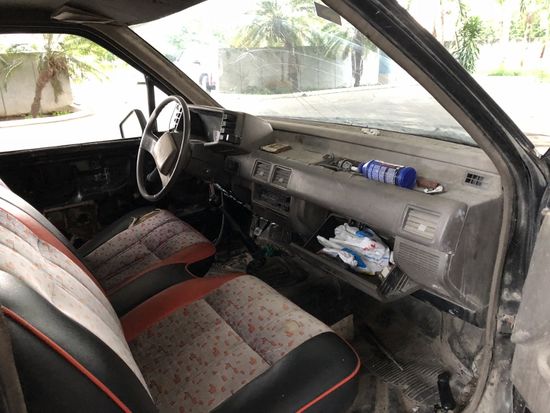 Ein spezielles Erlebnis, dieser Pickup. Angefangen von der deformierten Front zur Frontscheibe mit Steinschlag bis zur Innenausstattung. Aber er fährt noch, und das ist hier eh die Hauptsache.