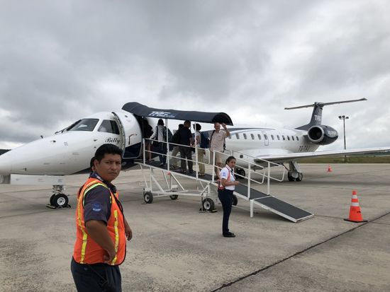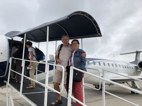 Nur eine halbe Stunde dauert der Flug, aber weil er um acht Uhr geht, müssen wir schon vor Sonnenaufgang aufstehen.