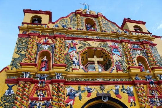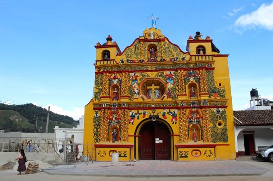 Als nächstes fahren wir den kleinen Ort San Andres an. Die Attraktion hier ist die farbig bemalte Kirche.