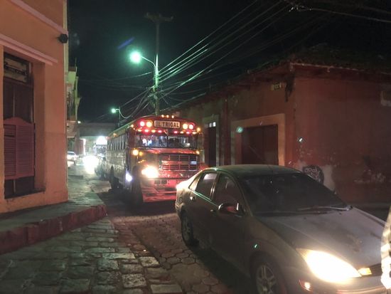 Der nächste Halt ist an einer grossen Kreuzung. Cuatro Caminos heisst der Ort und die Attraktion sind die grossen Busse, die hier alle anhalten und Passagiere suchen. Es herrscht ein Riesenchaos, das kaum zu beschreiben ist. Es wird gehupt, Adjudanten suchen Passagiere, versuchen die grossen Chickenbusse zu füllen. Anhalten, wegfahren, hupen, schreien. Man braucht sich nur irgendwohin zu stellen und wundern. Und die Kameras füllen sich mit Fotos und Videosequenzen.