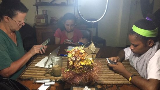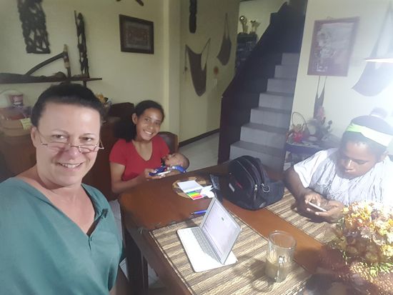 Wir sitzen hier im homestay mit den Mädels Delvin und Susan rum.