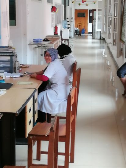 Deni geht mit uns zur Anmeldung um zu fragen, ob es noch Aufzeichnungen gibt, damit wir die Station finden auf der ich lag