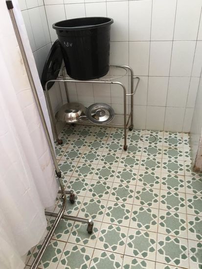 Immer noch eine Toilette für alle Menschen, die in dem Saal liegen. Damals waren es über 30–da jeder ja seine Angehörigen dabei hatte. Manche sogar bis zu 3 Personen