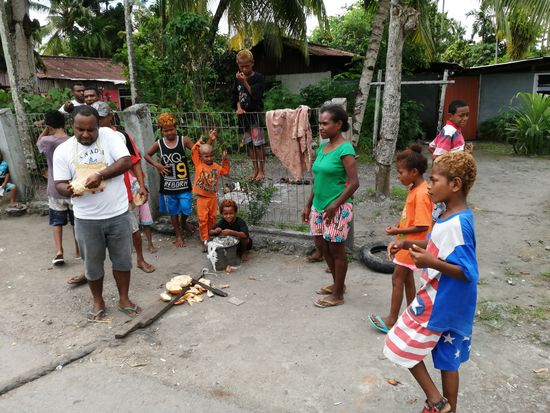 2 blonde Jungs fallen durch ihr Aussehen besonders auf—der Mann erklärt uns, dass sie von „Ambon“ kommen (Das ist die Haupt-Molukkeninsel)