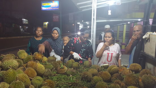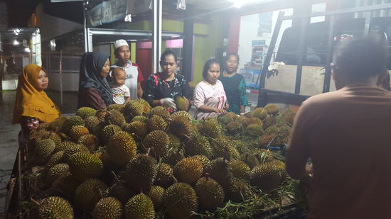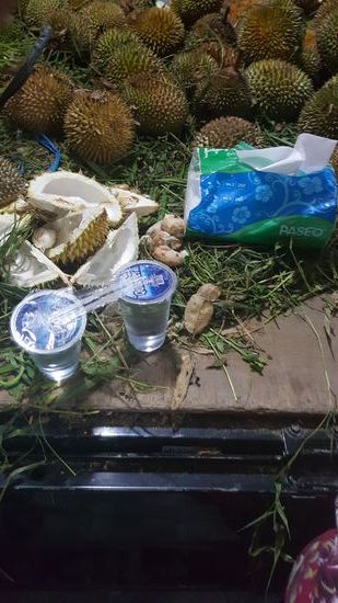 Seine LAdung besteht aus Durian—das sind die sogenannten Stinkefrüchte.