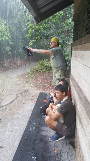 Wir sehen ein „Mousedeer“ davonhuschen (was das genau ist, muss ich mal googeln) und eine Tarantel in ihrer Höhle. Leider keinen Tarsian…