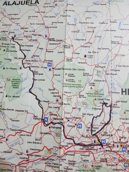 Die Fahrt nach La Fortuna zog sich hin. Das TomTom war generell nicht der Meinung des lokalen Gerätes und wir haben uns entschlossen diesem (TomTom) zu folgen. Wie wir nach Ankunft rausgefunden haben, war das auch die Tour die im Fahrbeschrieb des Touroperators steht. Zumindest in weiten Teilen. Die eine Abzweigung über Stock und Stein war so nicht beschrieben, ebensowenig die Fahrt durch den zukünftigen Tunnel, jetzt noch ein grüner Berg, der uns mangels Strasse zum Abbiegen zwang.