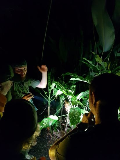Gebucht wurden letztlich die Nighttour, damit wir Spinnen und Frösche in ihrer natürlichen Umgebung beobachten können, sowie eine Withe Water Rafting Tour für Montagvormittag, womit wir uns gleich ein late check out rausschlagen konnten.