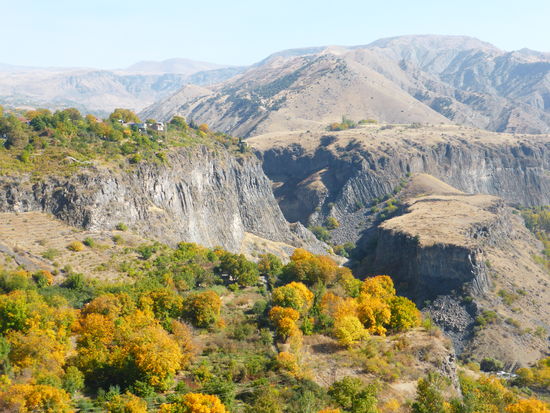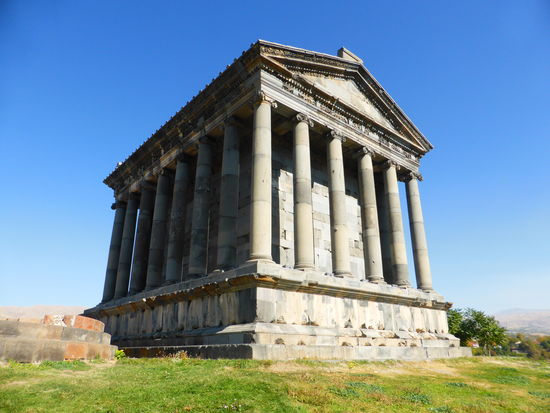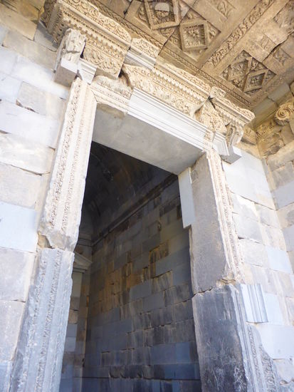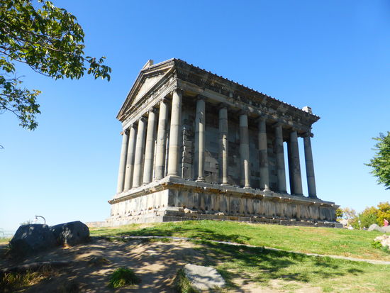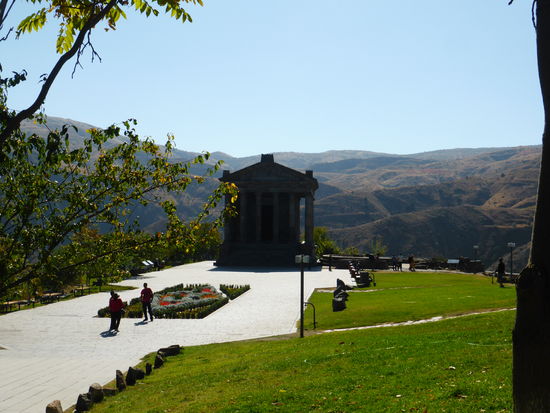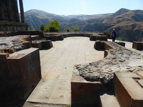 Zurück geht es nach Garni, wo es auf einem Bergsporn den einzigen hellenistischen Tempel in Armenien gibt, neben dem die Reste eines Palastes in Kreuzform ausgegraben wurden, zu denen in der Nähe auch noch die Reste eines Badehauses mit einem winzigen Rest von Mosaik gehören.