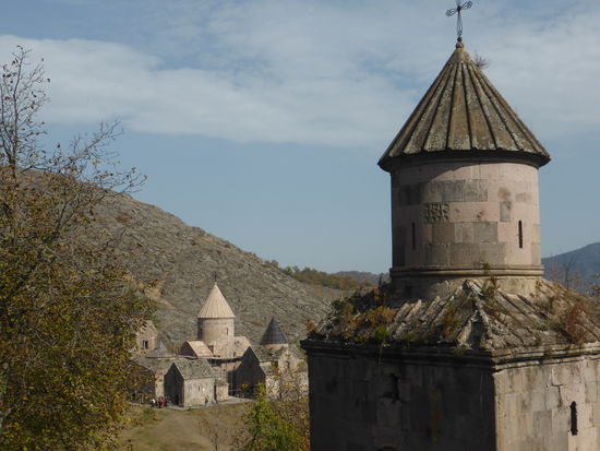 Der zweite Klosterkomplex für heute liegt etwas westlich von Gosch und heißt Goschavankh. Der Komplex liegt auf einer Höhe, man kann jedoch auch noch etwas Höhe steigen, um die drei Kirchen in ihrer tollen Lage zu bewundern.