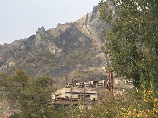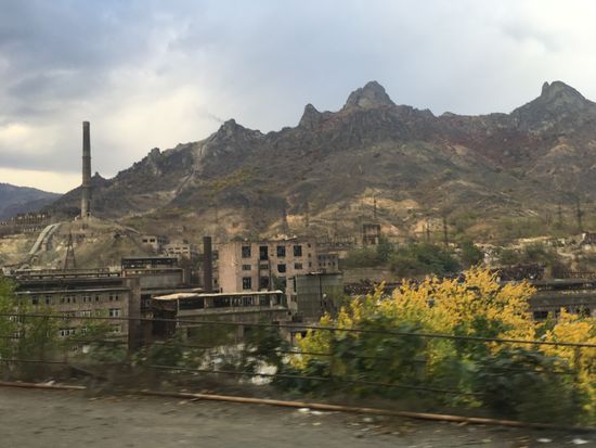 Durch ein enger werdendes Tal geht es dann weiter auf der M6 bis Skaverdi, einem ehemaligen russischen Kombinat mit Werkshäusern, die nun wirklich in ärmlichstem Zustand verdreckt sind, denn das Werk marodet vor sich hin seit der nabhängigkeit.