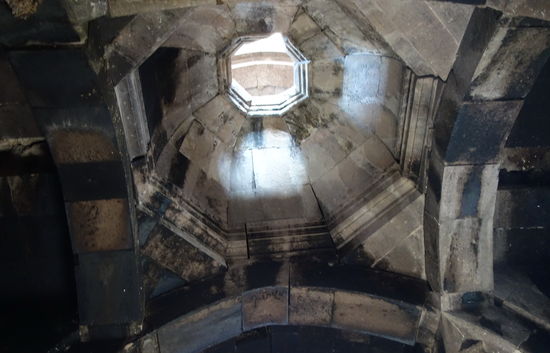 Das Westportal liegt bereits im großen, quadratischen Gavith. Auf vier freistehenden Pfeilern ruht die sehr große, breite achteckige Kuppel.
