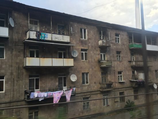 Auf der Weiterfahrt machen wir dann noch einen Halt beim Meister der Steinmetzkunst in Wanadsor, einem Ort mit zweifelhafter Geschichte, denn 1988 starben hier zahlreiche Menschen. Nelli behauptet, dass russische Bombenprobeexplosionen ein künstliches Erdbeben mit 80000 Toten verursachte. Das Internet gibt dazu nichts her.