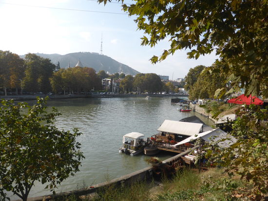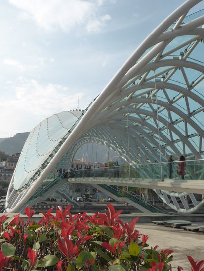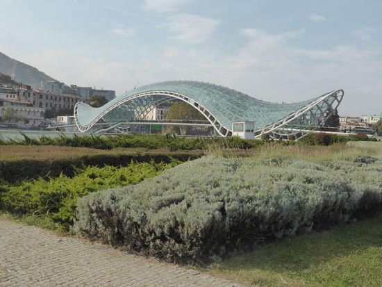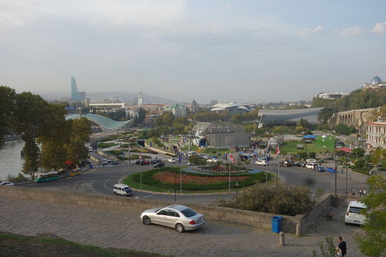 Da wir morgen mit der Gruppe durch die Altstadt geführt werden, entschließen wir uns zunächst den pompösen modernen Teil der Stadt anzuschauen. Am Europaplatz überqueren wir die Mitkvari und laufen durch den Rike-Park auf die Friedensbrücke zu.