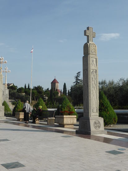 Schließlich schauen wir uns die Metekhi-Kirche an, die hoch über dem Europaplatz liegt. Sie ist eine Kreuzkuppelkirche aus dem 12. Jh. und gehörte einstmals zum Metekhi-Schloß , das vom 5. Jh. bis ins 19. Jh. eine wechselvolle Geschichte hatte. U.a. wurde es ab 1813 von denm Zarenreich als Gefängnis genutzt.