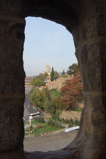 Durch die Metekhi-Str. wollen wir dann zu der oberhalb des Europaplatzes liegenden Festungsmauer, was uns jedoch nicht gelingt, da das Strassengewirr in sich nicht geschlossen ist und uns immer wieder in Sackgassen führt.
