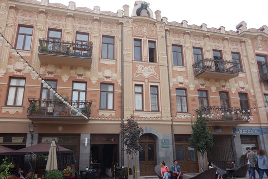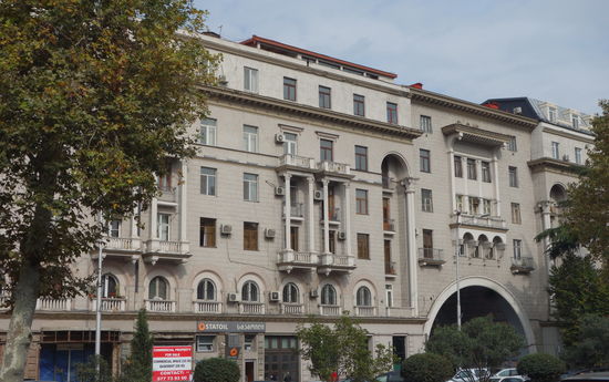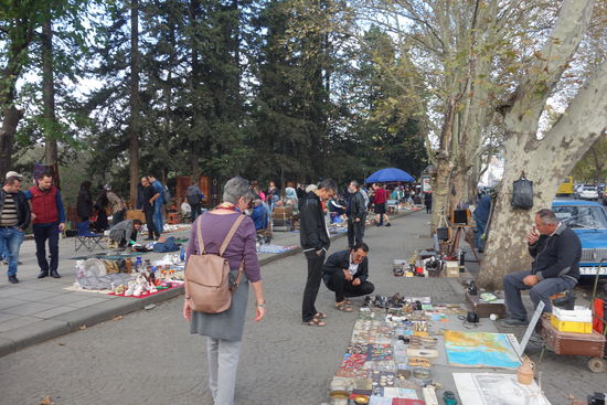 Von hier wollen wir über den 1,5 km langen Rustaveli-Boulevard zum Flohmarkt. Die platanenbestandene Prachtstraße wurde nach dem russischen Dichter Schota Rustaveli benennt. Der Boulevard verdankt seine Anlage mit Theatern, Palästen und den Wohnhäusern der georgischen Aristokratie im Stil des Klassizismus, des Jugendstils und Barocks vor allem den für die damalige Zeit modernen Ideen des russischen Vizekönigs Michail Semjonowitsch Woronzow, der ihn ab 1848 als Prachtstraße anlegen ließ.