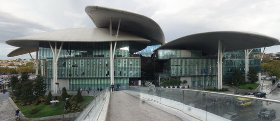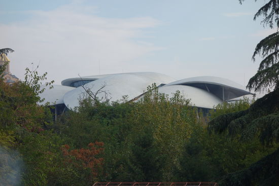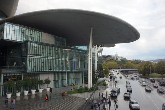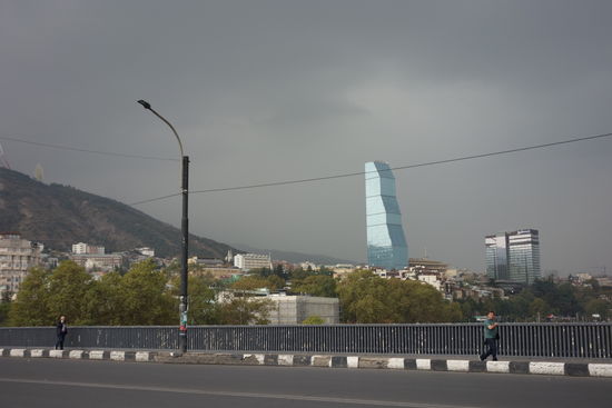 Wir überquern die Brücke - sehen in der Ferne den markanten Glas-Hochhaus-Hotelbau und gehen in das Neu-Tiflisviertel, das überwiegend von jungen Leuten bevölkert wird., da sich hier auch Gebäude der Universität befinden.