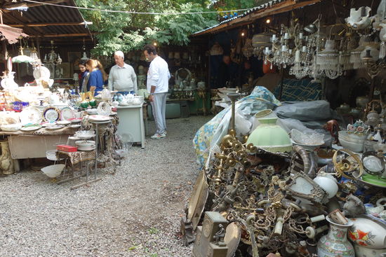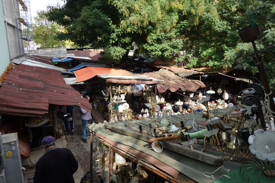 Am Ende des Parks von dem man einen ersten Blick auf das 'Pilzgebäude' werfen kann, beginnt der Flohmarkt an der Saabrukeni-Brücke