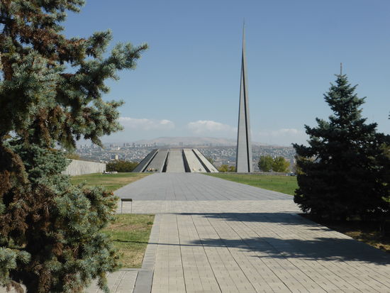 Pünktlich zum verabredeten Zeitpunkt sind alle da und wir fahren an der Cognacfabrik Ararat vorbei zu der Gedenkstätte des Völkermordes von 1915, dessen Anerkennung durch Europa vor allem Erdogan massiv gestört hat.