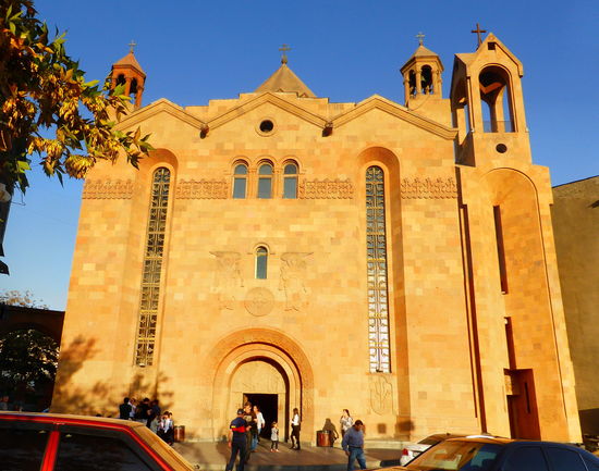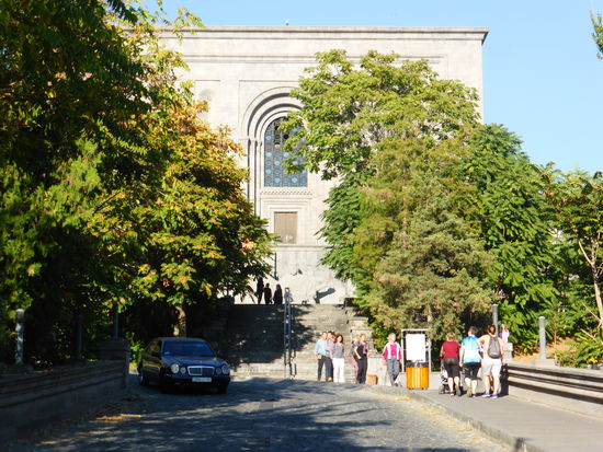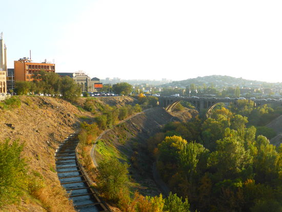 Ganz am Ende der Mashtot Ave. fällt das Gelände steil ab in das Tal der Hrazdan. Der Weg dorthin ist zwar nahezu unheimlich, durch Unterführungen deren Decken abplatzen, an abgezäunten Kellern vorbei, aus denen es bestialisch stinkt, aber der Blick über das Tal lohnt sich und auch die dortige moderne armenische Kirche, in der gerade eine Taufe stattfindet, ist hübsch.