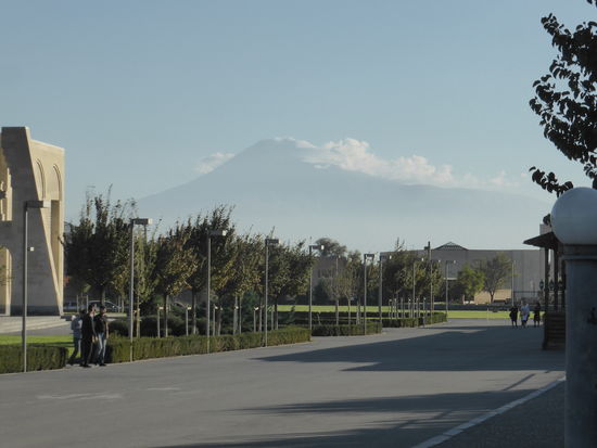 Vor dem Osteingang steht die Sonne jetzt so tief, dass man auch wieder den Ararat erkennen kann.