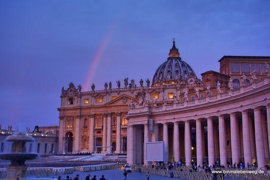 Für unser frühes Aufstehen wurden wir auch noch belohnt: Ein Regenbogen erwartete uns am Petersplatz.