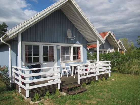 Hier habe ich ein kleines Ferienhaus gebucht. Die Ferienhäuser stehen ziemlich dicht beieinander mit vielleicht je 3 m Abstand, aber die schöne Terasse meines Hauses 3 schaut in Richtung See und nicht dem Nachbarn auf den Teller.