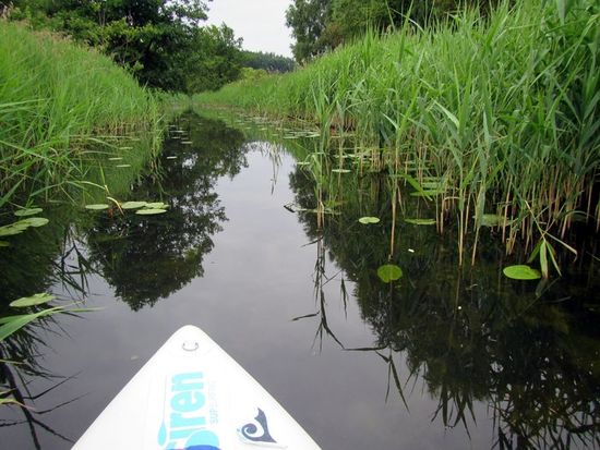 Nach dem Jäthensee schaue ich mir noch die Zufahrt zum Jamelsee an. Am Jamelsee liegt der Campingplatz "Zum Hexenwäldchen". Leider ist der "Treidelgraben" wegen der Finne des Boards auch zum Treideln zu flach. Da es mittlerweile recht warm geworden ist, paddle ich noch für eine Badepause in den Görtowsee. Die Tour war damit insgesamt 18 km lang.