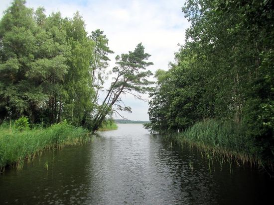 Heute möchte ich die Steinhavel ab Blankenförde aufwärts erkunden. Mit dem Auto fahre ich zum dortigen Rastplatz und pumpe dort das Board auf. Nach etwa einem Kilometer flussaufwärts kommt der Jäthensee, den man nur entlang der Bojenkette durchqueren darf.
