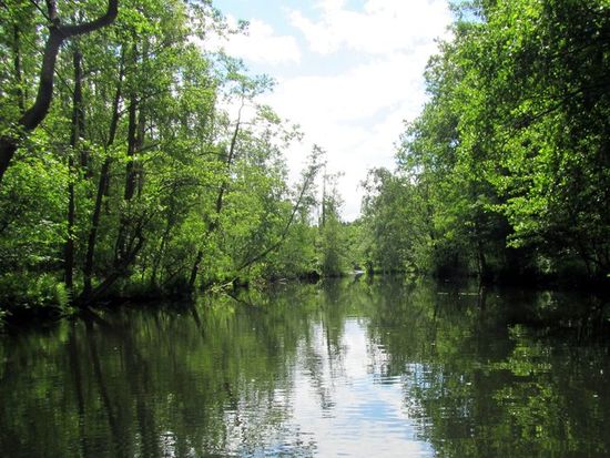 Heute ist schon wieder Abreise. Da immer noch kräftiger Wind aus westlicher Richtung angesagt ist, suche ich mir eine Seenkette, wo man im Windschatten des Westufers paddeln kann. Fündig werde ich in der Ortschaft Schwarz. Einsetzen kann ich hier an der Badestelle am Ende des Weges Seebusch. Zunächst geht es nach Süden bis in den Zethner See, dann nach Norden bis in den Fehrlingsee (12 km).