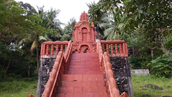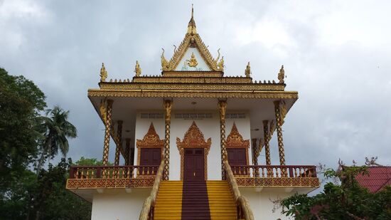 Heute gibt es neben Strandleben mal wieder einen Spaziergang und zwar auf den Tempelberg. Auf einem 130 Meter hohen Berg thront die schöne Tempelanlage Wat Chotynieng, einfacher auch Wat Leu ge- nannt. Von dem Berg aus hat man einen tollen Ausblick auf die Stadt. Ein kleiner Bach zieht sich durch die Stadt, der stinkt und ist schwarz. Nicht selten entsorgen die Bewohner ihren Müll in diesem Gewässer.