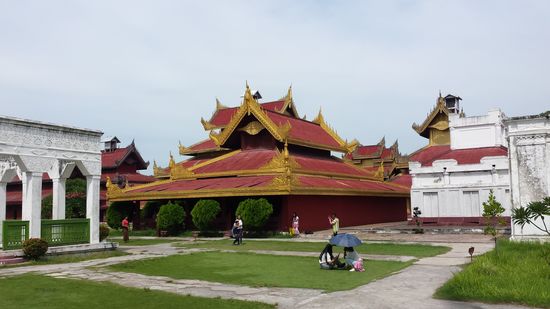 Mein Hotel liegt am Südost-Rand des alten Königspalastes. Das Palastgelände ist 2x2Kilometer groß und wird von einem breiten Wassergraben ungeben. Wer den Königspalast besuchen will, sollte einen Personalausweis oder Pass bei sich haben, der wird, warum auch immer, beim Ticketoffice, als Pfand abgegeben. Wenn man so wie ich keinen dabei hat ist das auch nicht schlimm, dann kann man als Pfand einen 5000 Kyat Schein geben, den bekommt man beim Verlassen des Geländes zurück. Auch das Ticket (10 000Kyats) sollte man gut aufbewahren und überall in Mandalay bei sich haben, es fungiert als Sammelticket und gilt auch bei anderen Sehenswürdig- keiten der Stadt als Eintrittskarte. Ich werde aber nirgendwo mehr danach gefragt.