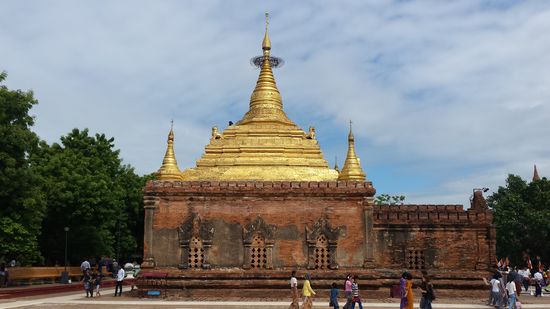 Die beste Art Bagan zu besichtigen, ist mit dem Pegasus. Für nur 2000 Kyats miete ich ein Rad - wieder ein alter Schinken, manche Unter- nehmen vermieten auch Mountain - oder e-Bikes, die kosten dann etwas mehr, sind aber auch noch günstig. Myanmar ist ein heißes Land, und schon wieder brennt die Sonne in voller Kraft vom Himmel. Das Beste von Fahrrad ist der Fahrtwind, aber wehe dem, der bei einer Pagode stehen bleibt, der wird sogleich von der schwülen Wärme ge- troffen. Von der Regenzeit, die im Oktober noch nicht ganz zu Ende ist, merkt man gar nichts. Auch wenn in der Wettervorhersage öfter Gewitter gemeldet waren, hat es bis jetzt nur einmal kurz in Yangon und auf der Fahrt nach Bagan geregnet.
