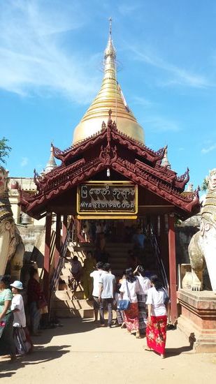 Bevor ich heute Abend zurück nach Yangon fliege, kaum zu glauben, meine Zeit in Myanmar ist fast schon zu Ende, habe ich einen weiter- en Tag Zeit, nocheinmal durch die wundervolle Pagodenlandschaft zu radeln. Nach dem Check-Out im Hotel kann ich mein Gepäck an der Rezeption lassen und darf später sogar den Pool noch benutzen. Ich war bei Helligkeit noch gar nicht bei der Shwezigon Paya, die große goldene Pagode im Zenrum von Nyaung U. Danach radle ich vorbei an anderen Pagoden ins Zentrum von Altbagan und da komme ich an die wunderschöne Pupaya Pagode, am Ufer des Irrawaddy. Da ist schon Mittag, und ganz in der Nähe ist eine Reihe von Straßenrestaurants. Wie überall sitzt man auf einfachen Plastikstühlen. Der Ober bedau- ert: "We have only Local-Food." Das ist genau das, was ich will! Es gibt ein Hähchen-Curry mit allen möglichen Beilagen und das für weniger als 1€, kaum zu glauben. Authentisch, einheimisch, gut!