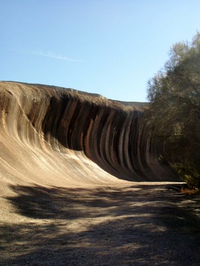 Der 15 m hohe und 110 m lange Wave Rock ist eine erstaunliche Felsformation, entstanden durch chemische Erosionen im Laufe von Jahrtausenden. Durch Regenwasser entstanden rosa und graue Streifen auf der riesigen Granitwelle.