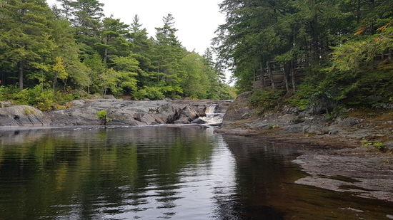 Auf dem Rückweg paddle ich noch um noch Bear Island herum und ein Stück den Mersey River aufwärts. Gegen Mittag hat der Wind zugenommen, die vielleicht 15 km/h sind aber noch kein Problem. Auf dem Rückweg schaue ich nochmal im Besucherzentrum vorbei, um Infos für weitere Tourideen holen. Dann sehe ich mir noch die Mill Falls gleich am Besucherzentrum an.