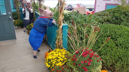 Auf dem Heimweg mache ich noch in Mahone Bay Station. Jetzt ist das "Scarecrow Festival" in vollem Gange und gegenüber den Vortagen sind etliche neue und originelle Vogelscheuchen zu bewundern. Erdbeerkuchen und einen guten Cappuccino bekomme ich bei Jo-Ann's.