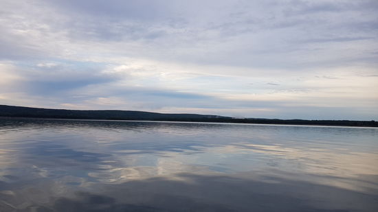 Am Morgen ist der See vor dem Campground vollkommen ruhig, da bietet sich eine kurze Morgenrunde mit dem SUP an. Erste Wolkenlücken zeigen sich, der hier nicht seltene Seenebel bleibt zum Glück weitgehend aus.