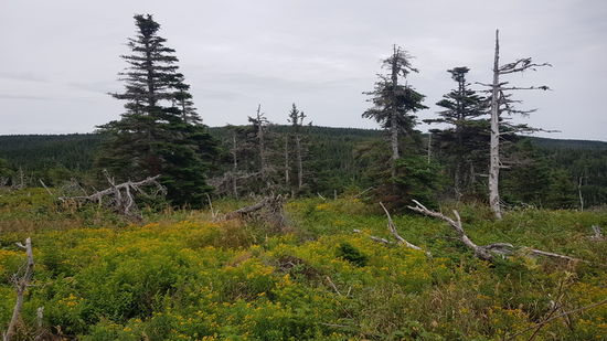 Nächster Stop ist dann der Skyline Trail. Von dem gehe ich nur ein Stück, denn bei dem einsetzenden Regen sind die Ausblicke doch recht beschränkt.